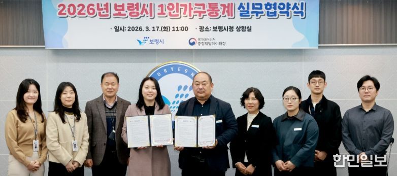 한민일보 서울포커스 임경복 기자 | 보령시는 17일 충청지방데이터청과 실효성 있는 맞춤형 정책 수립을 위한 ‘1인 가구 통계’ 작성 실무협약을 체결했다.