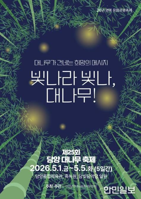 군 관계자는 “올해 축제는 더욱 빛나는 야간 경관과 담양만의 특별한 체험이 더해져 담양의 매력을 널리 알리는 자리가 될 것”이라며 “가족, 친구, 연인들이 함께 즐겁고 특별한 시간을 보낼 수 있도록 준비에 최선을 다하겠다”고 말했다.