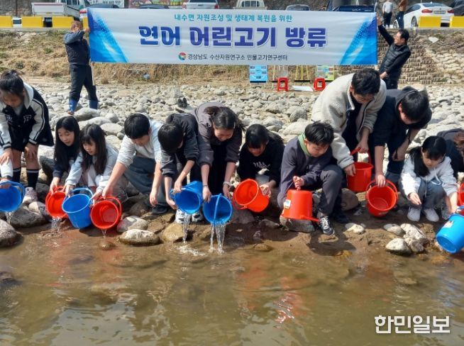 한민일보 서울포커스 진광성 기자 | 경상남도 수산자원연구소 민물고기연구센터는 17일 하동군 섬진강에서 내수면 청정 생태계 보전과 연어 자원 회복을 위해 어린 연어 2만 마리를 방류했다고 밝혔다.