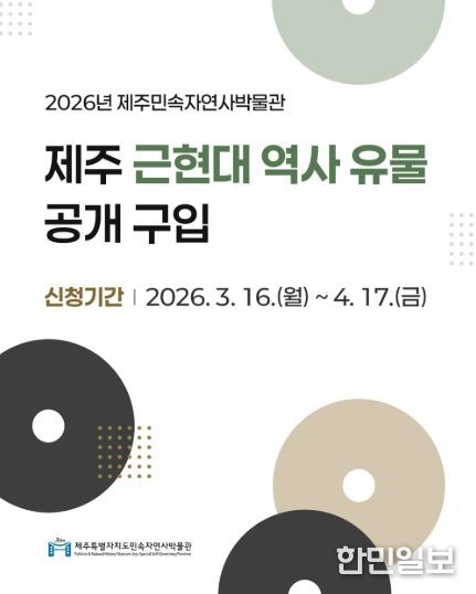 한민일보 서울포커스 임경복 기자 | 제주특별자치도 민속자연사박물관(관장 박찬식)이 4월 17일까지 제주 근현대의 시대상을 담은 자료를 공개 구입한다.