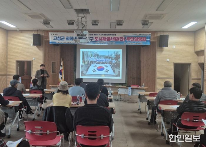 한민일보 서울포커스 김은금 기자 | 고성군은 3월 17일 회화면사무소에서 배둔지구 주민협의체 회원 및 주민 40여 명을 모시고 2026년 공모 예정인 배둔지구 도시재생사업 주민설명회를 가졌다.