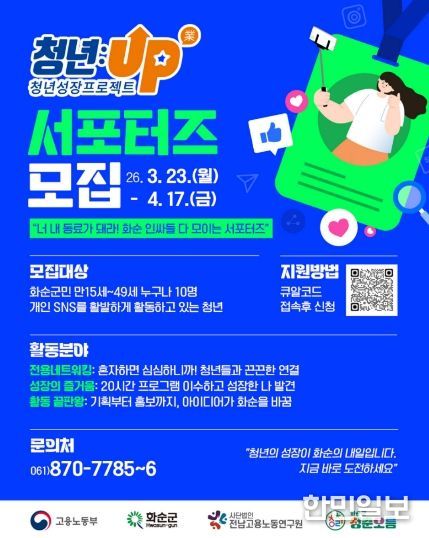 한민일보 서울포커스 박용남 기자 | 화순군은 17일 지역 청년들의 취업 준비와 사회 진입을 지원하기 위한 청년성장프로젝트 ‘청춘오름’을 4월부터 본격 운영한다고 밝혔다.