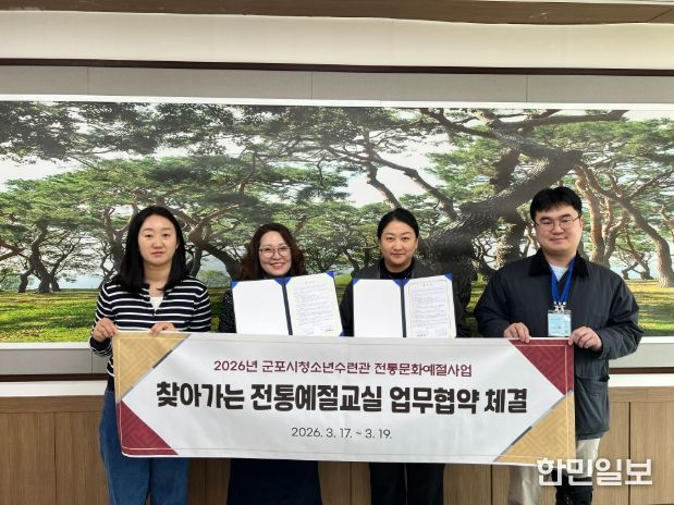 한민일보 서울포커스 임경복 기자 | (재)군포시청소년재단 군포시청소년수련관은 2026년 3월 17일부터 19일까지 관내 초등학교 8개교와 '찾아가는 전통예절교실' 운영을 위한 업무협약(MOU)을 진행하고 있다.