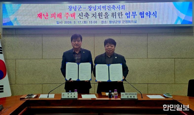 한민일보 서울포커스 김은금 기자 | 창녕군과 창녕지역건축사회(회장 김태헌)는 지난 17일 군청 군정회의실에서 ‘재난 피해 주택 신축 지원 업무협약’을 체결했다고 밝혔다.
