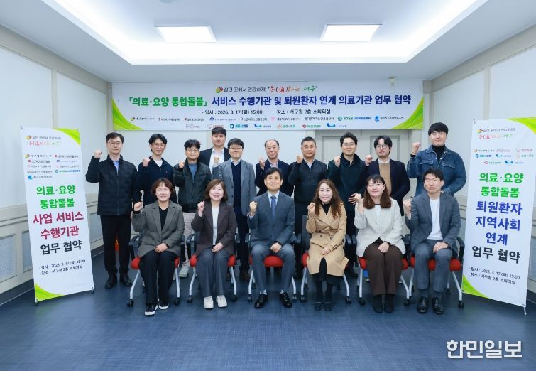 한민일보 서울포커스 임경복 기자 | 대구 서구는 지난 17일 통합돌봄서비스 관계 기관(퇴원 환자 연계 및 일상생활 돌봄)과 업무협약을 체결했다
