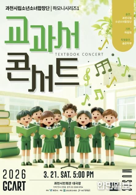 한민일보 서울포커스 최성훈 기자 | 과천시립소년소녀합창단의 ‘하모니시리즈1 '교과서 콘서트'’가 오는 21일 오후 5시, 과천시민회관 대극장에서 열린다.