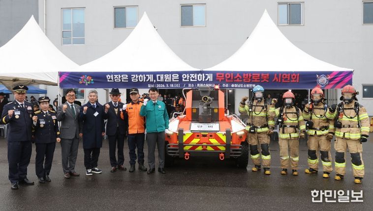 한민일보 서울포커스 최성훈 기자 | 충남도 소방본부가 800℃의 화염과 한 치 앞을 내다 볼 수 없는 짙은 연기를 뚫고 화재 진압 및 인명 수색 작전을 펼 수 있는 무인소방로봇을 현장에 배치, 본격 가동에 들어갔다.