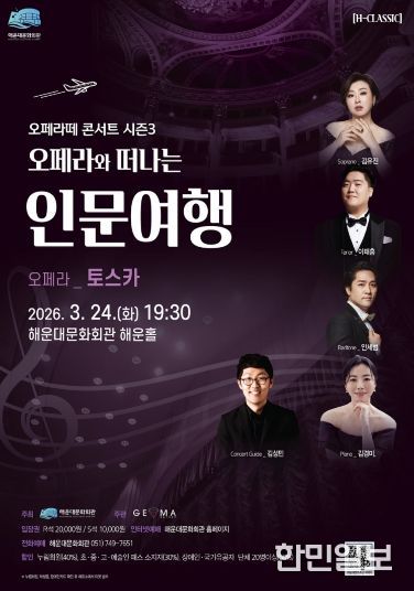 한민일보 서울포커스 임광현 기자 | 해운대문화회관은 24일 오후 7시 30분 오페라떼 시즌3 ‘오페라와 떠나는 인문 여행’ 첫 무대로 오페라 ‘토스카’를 해운홀에서 개최한다.