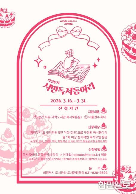 한민일보 서울포커스 심기옥 기자 | 의정부시는 독서공동체의 자발적 참여를 촉진하고 독서 문화의 기반을 마련하기 위해 ‘2026년 시민 독서동아리’를 운영한다.