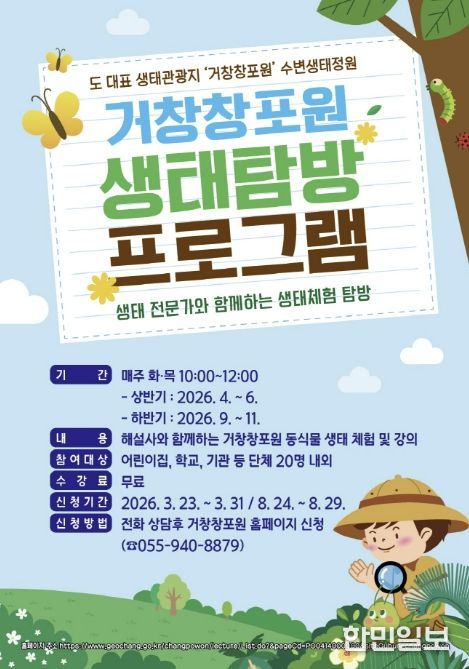 한민일보 서울포커스 김서윤 기자 | 거창군은 4월부터 군민과 방문객 등을 대상으로 거창창포원의 자연자원을 활용한 현장 중심 생태체험프로그램을 운영한다.