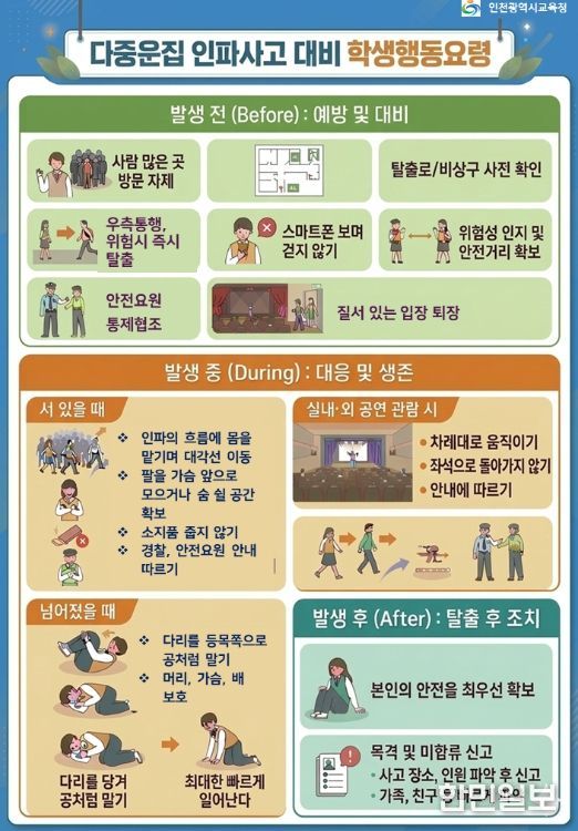 시교육청 관계자는 "학생들의 안전이 무엇보다 최우선"이라며 "경찰청 등 유관기관과 협력해 대규모 인파 밀집 등 다양한 위기 상황에 선제적으로 대응하고 사고 예방에 최선을 다하겠다"고 말했다.
