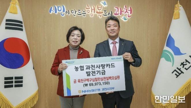 한민일보 서울포커스 최성훈 기자 | 과천시는 19일 NH농협은행 과천시지부로부터 제휴카드 사용으로 적립된 기금 6천 9백여만 원을 전달받았다고 밝혔다.