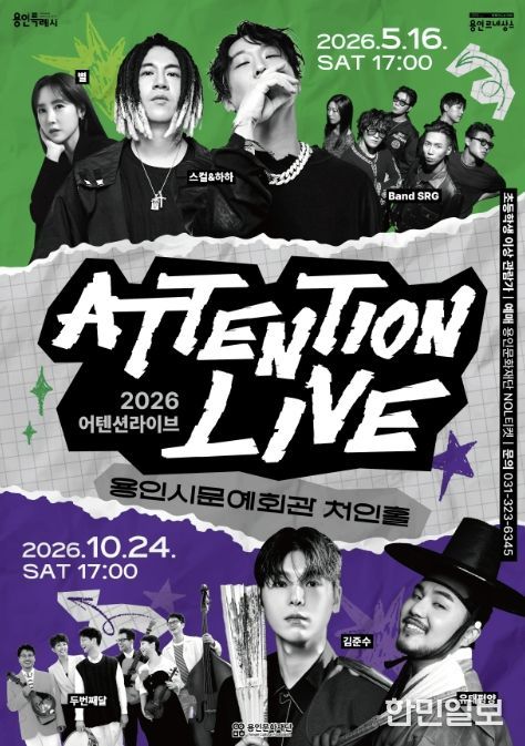 한민일보 서울포커스 김성윤 기자 | 용인문화재단은 용인시문예회관 처인홀에서 청년층을 주요 대상으로 한 라이브 공연 브랜드 '2026 어텐션 라이브'를 상·하반기 두 차례에 걸쳐 개최한다.