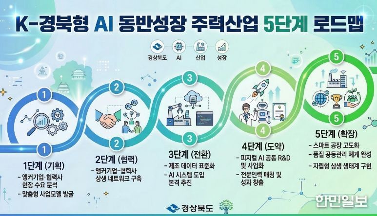 한민일보 서울포커스 김은금 기자 | 경상북도는 전국 최초로 지역 앵커기업의 수주물량과 중소기업의 AI 기술도입을 연계하는 K-경북형 AI 동반성장 주력산업 육성 프로젝트를 본격 가동한다.