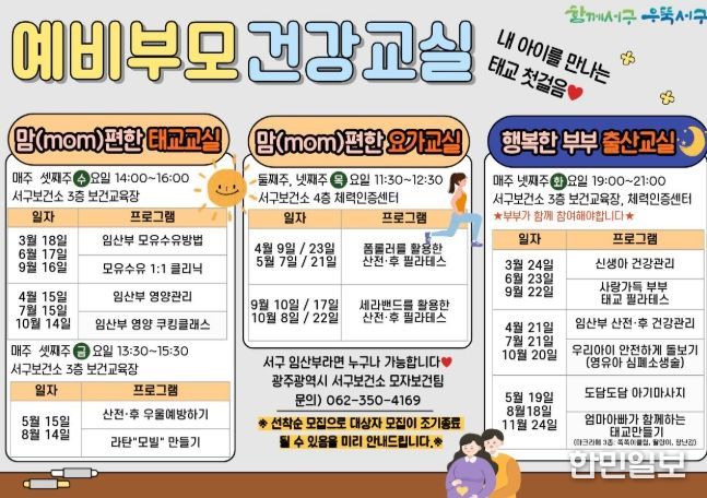 한민일보 서울포커스 임경복 기자 | 광주광역시 서구는 건강한 출산과 올바른 육아 지원을 위해 ‘예비부모 건강교실’을 본격 운영한다.
