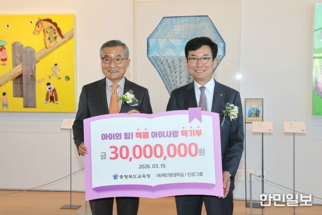한민일보 서울포커스 임경복 기자 | 충청북도교육청은 19일 오후 2시, 보은 제산컬쳐센터에서 '아이의 힘! 책봄 아이사랑 책기부' 사업에 (재)제산평생학습‧인광그룹(회장 김상문)이 3천만 원을 기부하며, 2026년에도 교육나눔에 동참한다고 밝혔다.