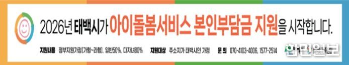 한민일보 서울포커스 임경복 기자 | 태백시는 양육 공백이 발생하는 가정의 경제적 부담을 경감하고 아이 키우기 좋은 환경을 조성하기 위해 ‘아이돌봄서비스 본인부담금 지원사업’을 시행하고 적극적인 홍보에 나선다고 밝혔다.