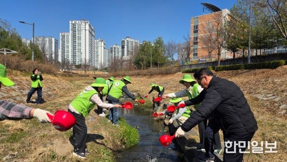 한민일보 서울포커스 임경복 기자 | 김천시는 다가 오는 3월 22일 '세계 물의 날'을 기념하여 3월 19일 율곡동 석정천 일대에서 '쓰담쓰담 푸른 석정천 가꾸기' 행사를 개최했다. 행사명 ‘쓰담쓰담’은 ‘토닥이다’와 ‘쓰레기담기’ 활동을 압축한 표현이다.
