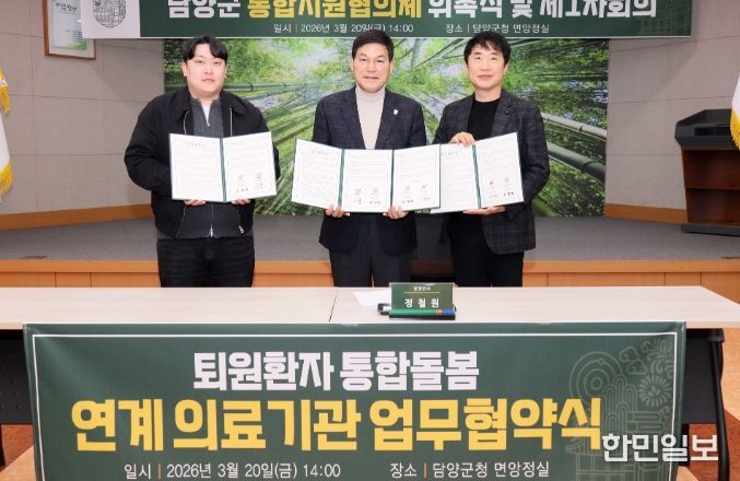 한민일보 서울포커스 임경복 기자 | 담양군은 20일 군청 면앙정실에서 관내 2개 의료기관과 ‘퇴원환자 통합돌봄 연계 의료기관 업무협약(MOU)’을 체결했다.