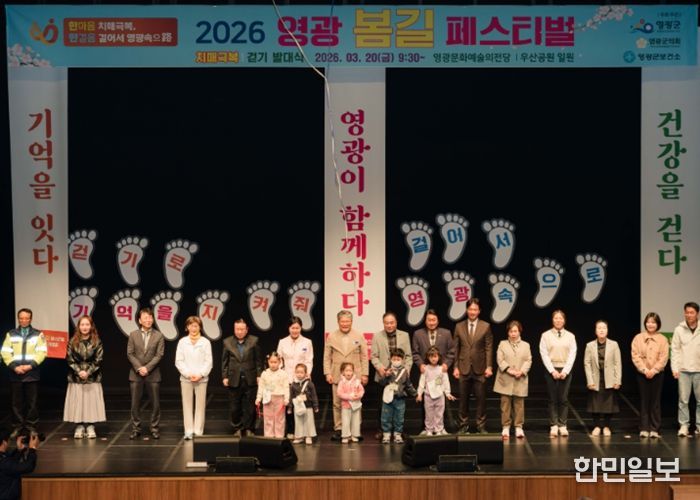 이날 참가자들은‘걷기로 기억을 지켜줘’, ‘걸어서 영광속으로’라는 메시지를 함께 완성하며 치매 예방과 건강한 생활 실천에 대한 공감대를 형성했다. 이어 군수님의 힘찬 출발 구호와 함께 군민들은 봄기운이 완연한 영광의 길을 함께 걸으며 건강한 일상을 다짐했다.