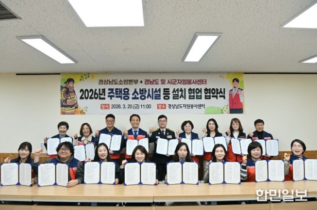 한민일보 서울포커스 최성훈 기자 | 경상남도 소방본부는 20일 오전 11시 경상남도자원봉사센터와 도내 18개 시군 자원봉사센터가 참여한 가운데 주택용 소방시설 보급 협력을 위한 업무협약을 체결했다고 밝혔다.