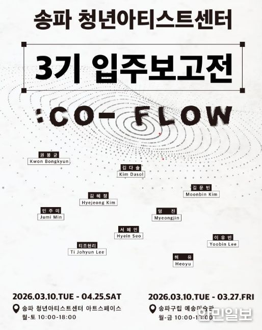 한민일보 서울포커스 박정민 기자 | 서울 송파구는 송파청년아티스트센터 제3기 입주작가 10인의 첫 전시 ‘Co-Flow’를 3월 10일 개최했다고 밝혔다.