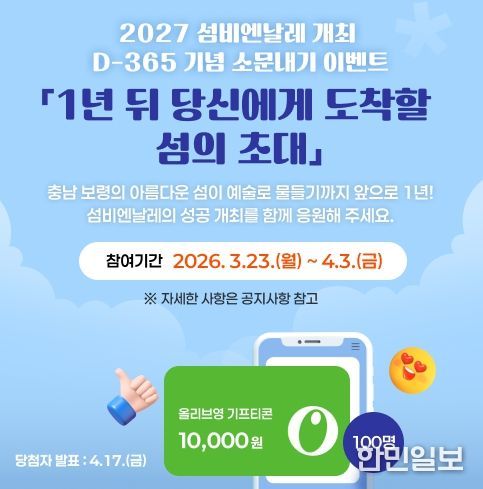 한편 국내 최초로 섬을 주제로 열리는 섬비엔날레는 2027년 4월 3일부터 약 두 달간 충남 보령의 원산도와 고대도를 무대로 24개국 작가들의 다양한 예술 작품들을 선보일 예정이다.
