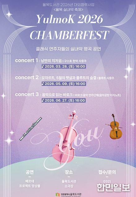한민일보 서울포커스 유창렬 기자 | 인천광역시는 율목도서관에서 지역 주민들이 일상 가까이에서 클래식 음악을 즐길 수 있도록‘율목 실내악 축제 'Chamberfest 2026'’을 개최한다고 밝혔다.