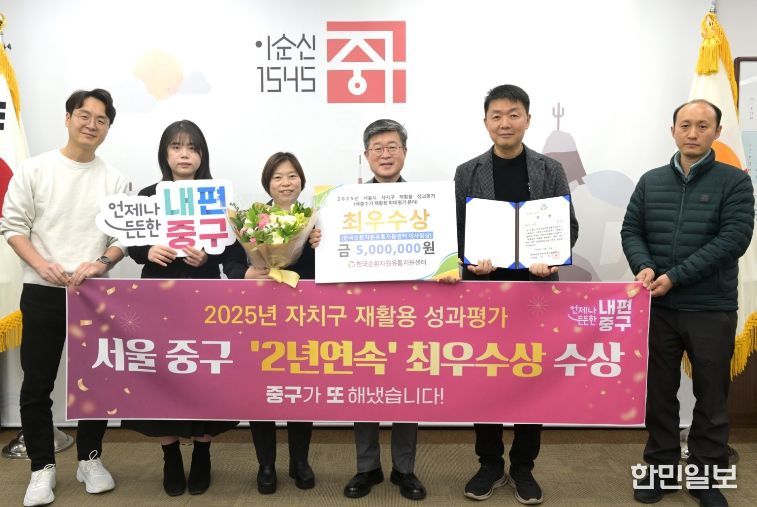 한민일보 서울포커스 김서윤 기자 | 서울 중구는 서울시가 실시한 ‘2025년 자치구 재활용 성과평가’에서 지난해에 이어 2년 연속 최우수상을 수상했다.