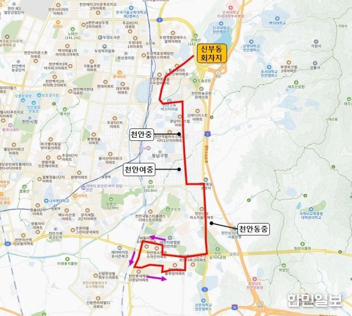 시는 등·하교 시간을 고려해 배차를 확정했으며, 천안동중·천안여중·천안중학교 등 주요 학교 인근의 천안대로와 충절로를 경유하도록 설계해 학생들의 접근성을 높였다.