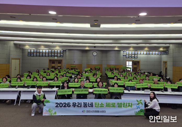 한민일보 서울포커스 황준형 기자 | 천안시는 지난 21일 시청 대회의실에서 천안시자원봉사센터가 시민 참여형 탄소중립 실천 운동인 ‘2026 우리동네 탄소 제로 챌린지’ 발대식을 개최했다고 밝혔다.
