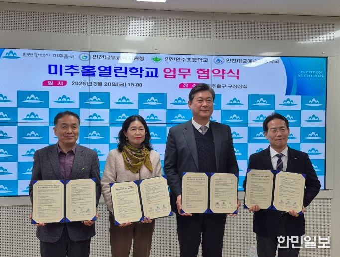 한민일보 서울포커스 유창렬 기자 | 인천남부교육지원청은 지난 20일 미추홀구청, 인천인주초등학교, 인천대중예술고등학교와 함께 지역사회 협력 강화를 위한 ‘미추홀열린학교 업무협약식’을 개최했다.