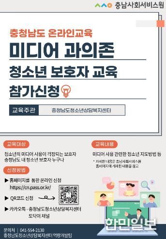 한민일보 서울포커스 박덕환 기자 | 충남사회서비스원 청소년상담복지센터는 오는 4월 16일 목요일에 진행되는 ‘1차 미디어 과의존 청소년 보호자교육’을 시작으로 9월까지 총5회에 걸쳐 보호자 교육을 운영한다.