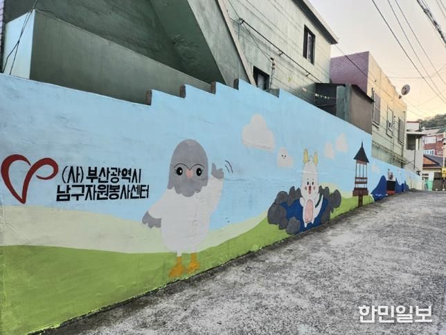 한민일보 서울포커스 임광현 기자 | (사)부산남구자원봉사센터와 부경대 벽화봉사단 ‘절영회’는 지난 3월 22일 남구 신선로337번길 17-20 일원 담벼락에서 ‘붓끝으로 그리는 세상’ 사업을 진행하며 지역의 오래된 담벼락 약 30미터 구간에 생동감 있는 벽화를 조성했다고 밝혔다.