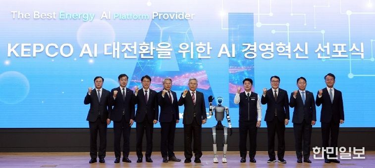 이날 선포식에는 김동철 사장을 비롯한 경영진과 기후에너지환경부, 한국지능정보사회진흥원(NIA) 등 유관기관 관계자들이 참석했다. 특히, 김동철 사장이 휴머노이드 로봇과 함께 입장하는 퍼포먼스를 선보이며, AI가 주도할 전력산업의 미래를 상징적으로 제시했다.