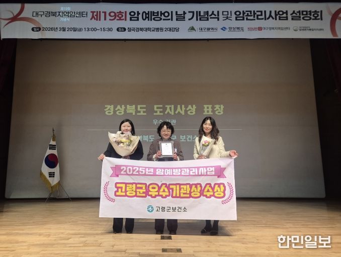 한민일보 서울포커스 임경복 기자 | 고령군은 지난 3월 20일 칠곡경북대학교병원 대구경북지역암센터에서 개최된 ‘제19회 암예방의 날 기념식’에서 2025년 암예방관리사업 우수기관상을 수상했다.