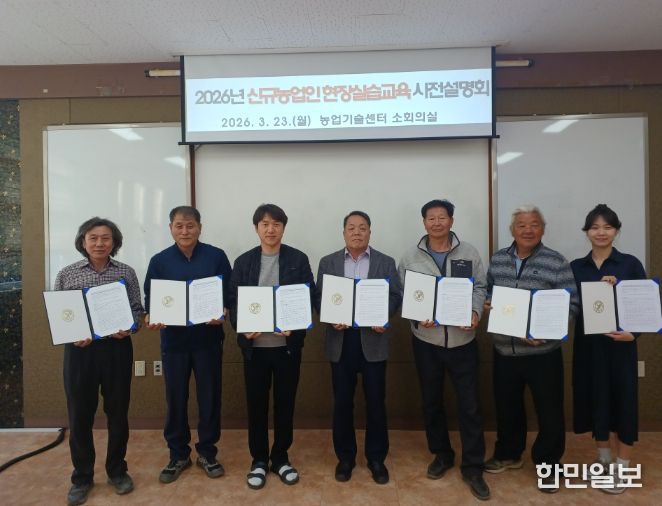 한민일보 서울포커스 김다남 기자 | 증평군농업기술센터는 지난 23일 귀농 연수생 및 선도 농가와 2026년 신규농업인 현장실습 교육 약정서를 체결하고 사전교육을 진행했다고 밝혔다.