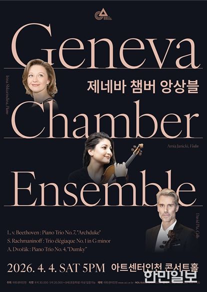 한민일보 서울포커스 유창렬 기자 | 아트센터인천은 세계적인 국제 음악 콩쿠르 수상자들로 구성된 스위스 대표 실내악 단체인 '제네바 챔버 앙상블'의 내한 공연을 오는 4월 4일 오후 5시 아트센터인천 콘서트홀에서 선보인다. 이번 공연은 세계 무대에서 검증된 솔리스트 3인이 빚어내는 정교하면서도 밀도 높은 사운드를 통해 실내악의 진정한 매력을 경험할 수 있는 기회가 될 것이다.