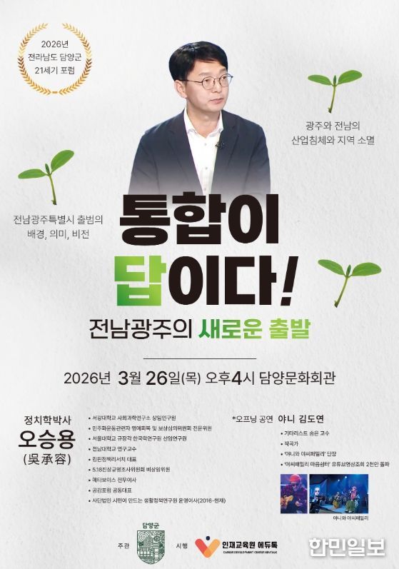 한민일보 서울포커스 임경복 기자 | 담양군이 오는 3월 26일 담양문화회관에서 ‘제192회 21세기 담양포럼’을 개최한다.