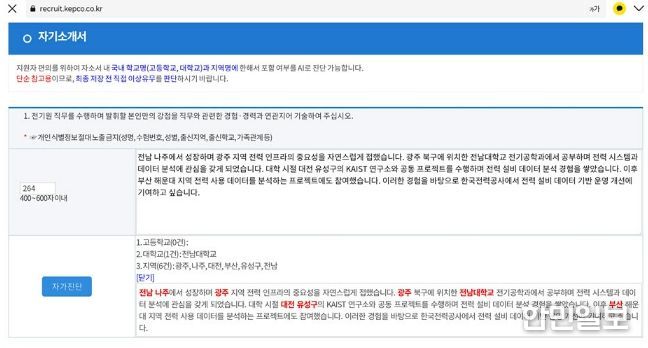 한민일보 서울포커스 박정민 기자 | 한국전력이 채용 지원자의 편의를 높이고 공정한 채용 환경을 조성하기 위해, 자기소개서 AI 자가 진단과 네이버 인증 기반 자격증 자동 반영 서비스를 채용 시스템에 전격 도입한다.