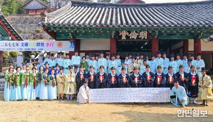 이번 춘기 석전에는 박일동 진주시 부시장이 초헌관을 맡았으며, 백승흥 진주시의회 의장이 아헌관, 신현인 진주교육지원청 교육장이 종헌관으로 참여해 엄숙한 분위기 속에서 제례가 진행됐다.