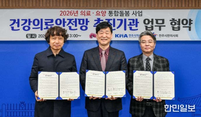 시와 전주시의사회(회장 박용현), 전주시한의사회(회장 박상구)는 24일 시청 3층 회의실에서 윤동욱 전주시장 권한대행 부시장과 박용현 전주시의사회장, 박상구 전주시한의사회장 등이 참석한 가운데 ‘2026 건강-의료안전망 사업 추진을 위한 업무협약’을 체결했다.