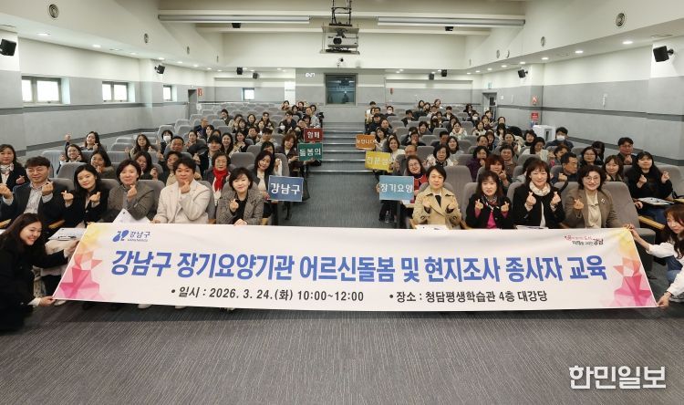 한민일보 서울포커스 박정민 기자 | 꿈이 모이는 도시, 미래를 그리는 강남구(구청장 조성명)가 3월 24일 청담평생학습관에서 관내 재가장기요양기관장과 종사자 130여 명이 참석한 가운데 ‘2026년 장기요양기관 어르신 돌봄 및 부당청구 예방 교육’을 실시했다.