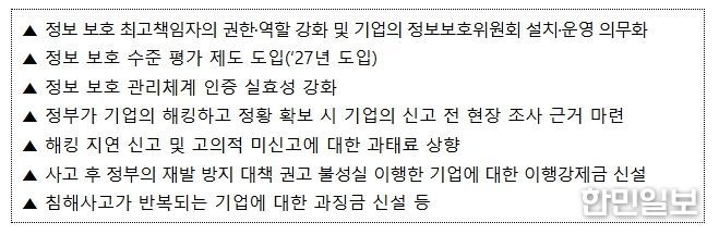 정보통신망법 개정안은 사이버 침해사고 예방부터 대응까지 전 범위를 강화하는 것을 골자로 한다. 기업의 정보 보호 역량을 높이고 관련 정보 보호 인증 체계를 강화하여 침해사고 발생을 더 효과적으로 예방할 수 있게 되며, 사고 발생이 의심되면 정부의 조사가 가능해져 사이버보안 침해사고에 더욱 빠르게 대응할 수 있게 된다. 무엇보다 침해사고로 인한 국민의 피해를 방지하기 위해서 기업의 사회적, 법적 책임을 강화하는 내용을 담고 있다.