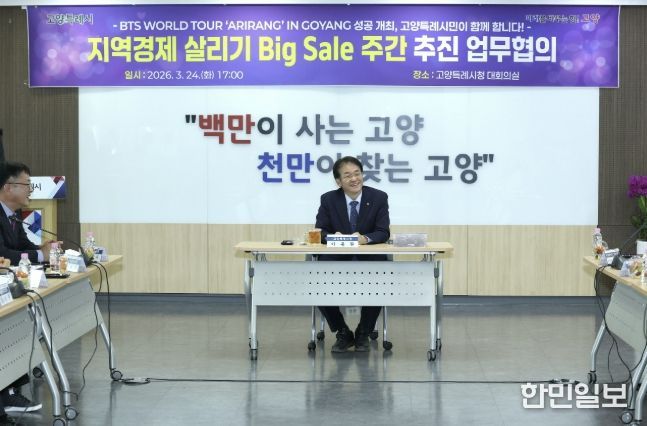 시는 지난 24일 시청 대회의실에서 ‘지역경제 살리기 빅 세일 주간’ 추진을 위한 업무협의를 개최했다. 회의에서는 BTS 월드투어 고양 콘서트의 성공적 개최를 기원하고, 지역 경제 활성화와 민생회복 계기를 마련하기 위한 지역경제 살리기 빅 세일 주간을 자발적인 시민 참여형 이벤트로 추진하는 방안을 논의했다.