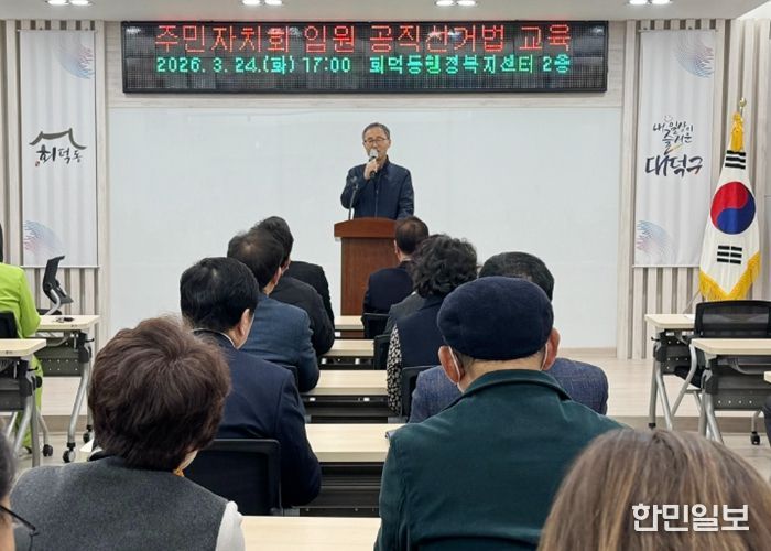 대덕구 관계자는 “주민자치위원은 지역사회에서 중요한 역할을 수행하는 만큼 선거 시기에는 더욱 엄격한 정치적 중립성이 요구된다”며 “이번 교육을 통해 공정한 선거문화 조성과 법 준수 인식이 확산되기를 기대한다”고 말했다.