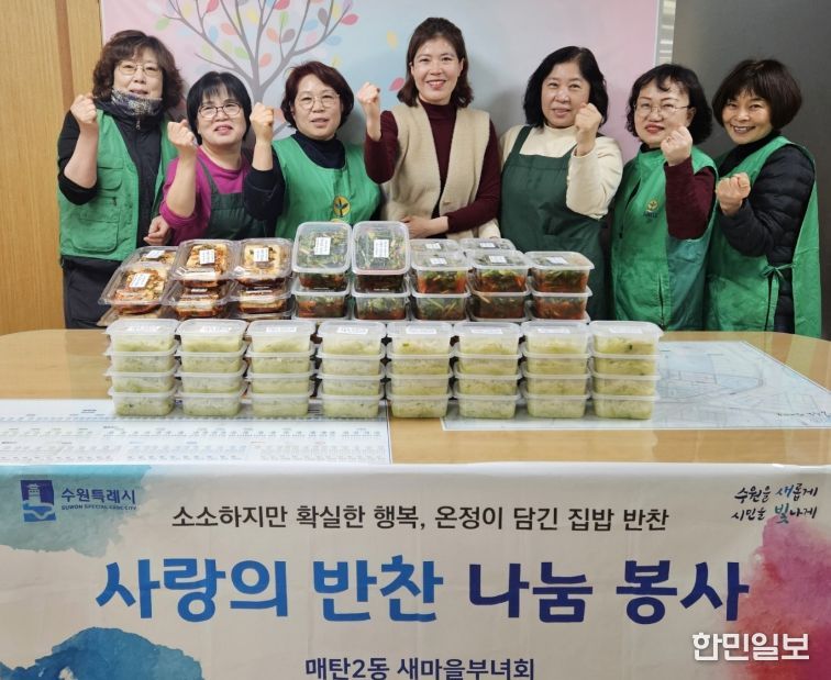 승병숙 매탄2동장은 “바쁜 와중에도 기쁜 마음으로 반찬을 만들어주신 매탄2동 새마을부녀회원들에게 감사드리며, 반찬 나눔으로 따뜻한 지역사회가 되길 소망한다”고 전했다.