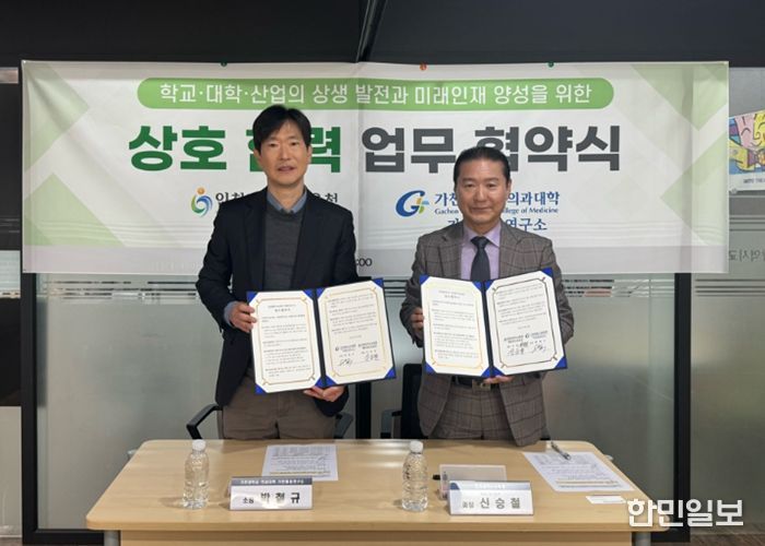 한민일보 서울포커스 유창렬 기자 | 인천광역시교육청은 24일 가천대학교 의과대학 가천통증연구소(소장 박철규)와 학교·대학·산업의 상생 발전 및 미래 인재 양성을 위한 업무협약을 체결했다.