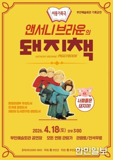 한민일보 서울포커스 김용택 기자 | 부안군은 가족 뮤지컬 ‘돼지책’을 오는 4월 18일 오후 3시 부안예술회관 공연장에서 공연한다고 밝혔다.