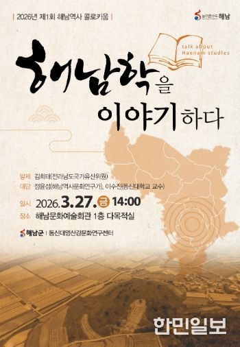 군은 오는 27일 오후 2시, 해남문화예술회관 다목적실에서 2026년 제1회 해남역사 콜로키움(토론회)‘해남학을 이야기하다’를 개최한다.